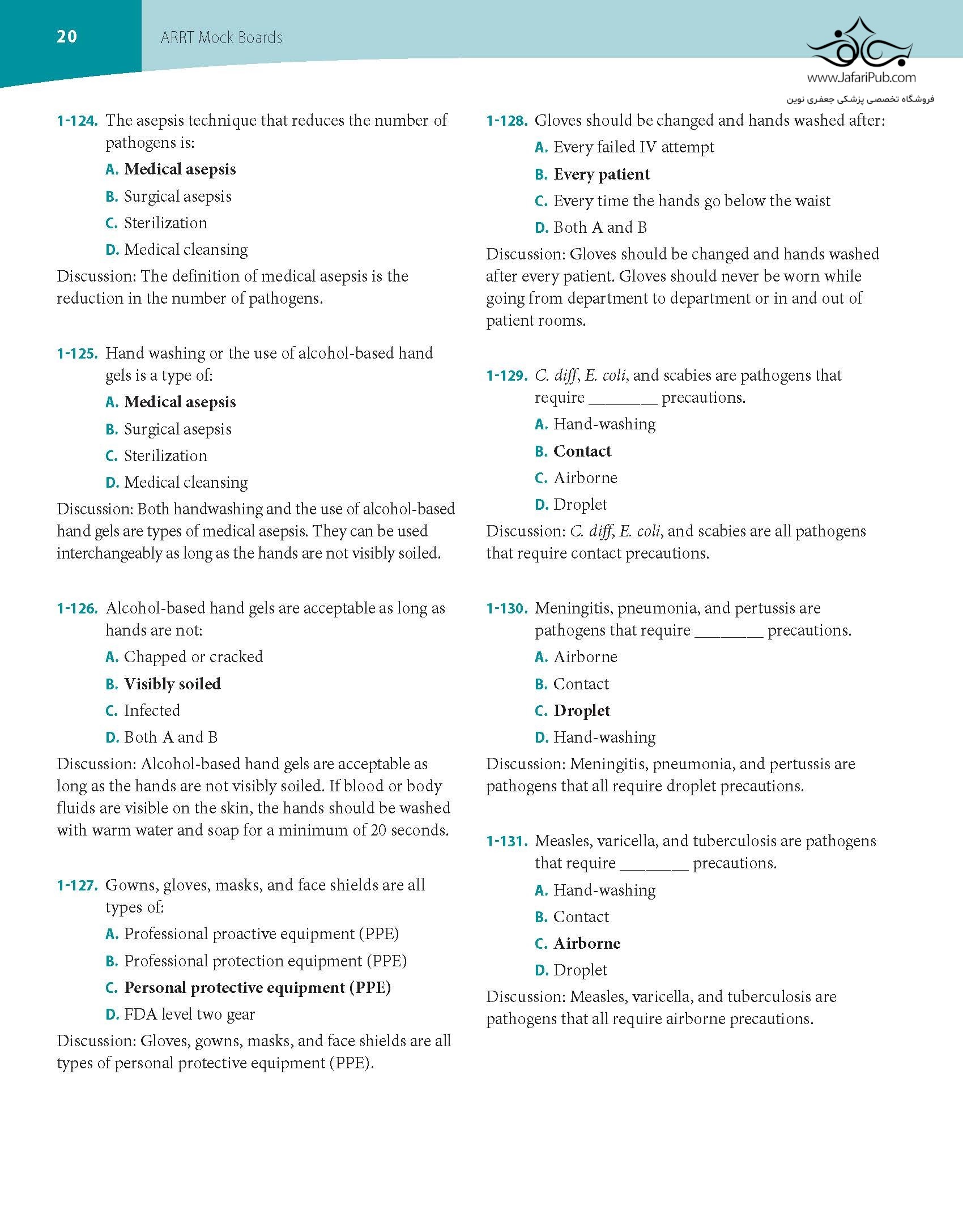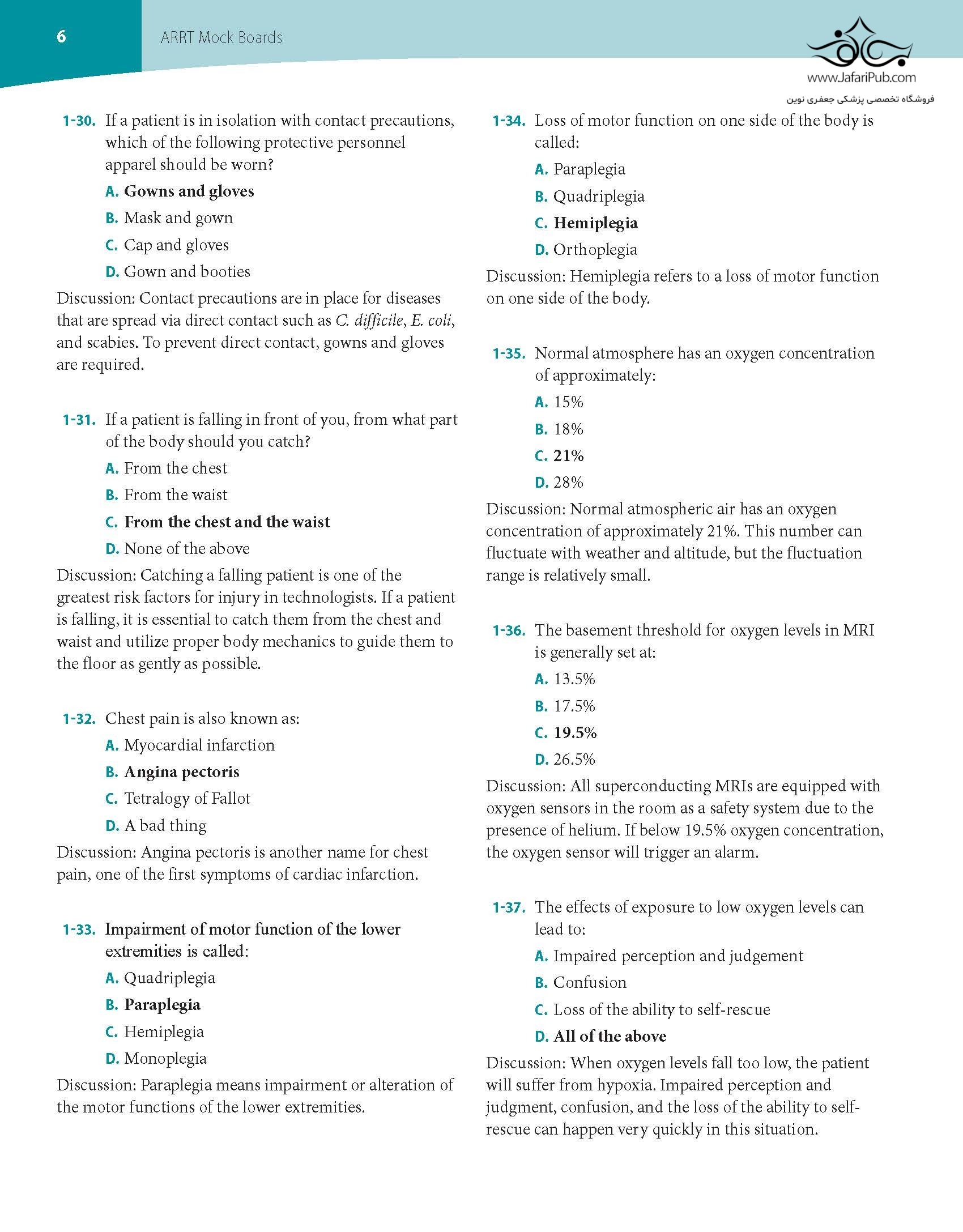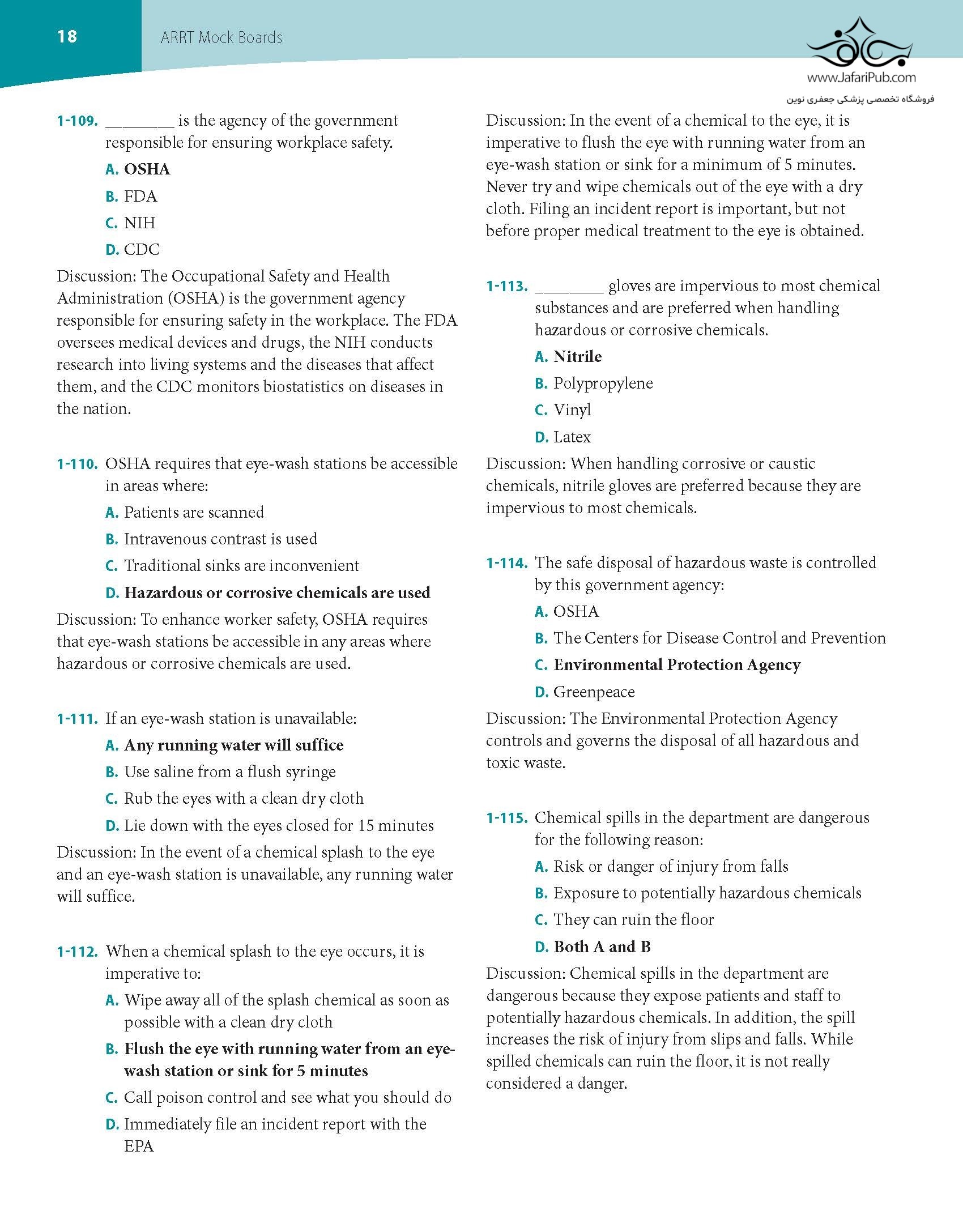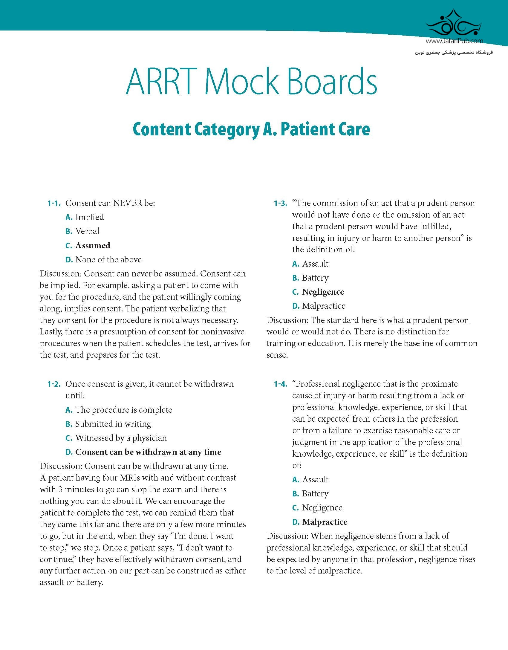 این بررسی منحصر به فرد به بخش هایی تقسیم شده است که هر موضوع اصلی موجود در آزمون، از جمله مراقبت و ایمنی بیمار، رویه های تصویر، جمع آوری و پردازش داده و اصول فیزیکی تشکیل تصویر را پوشش می دهد.
