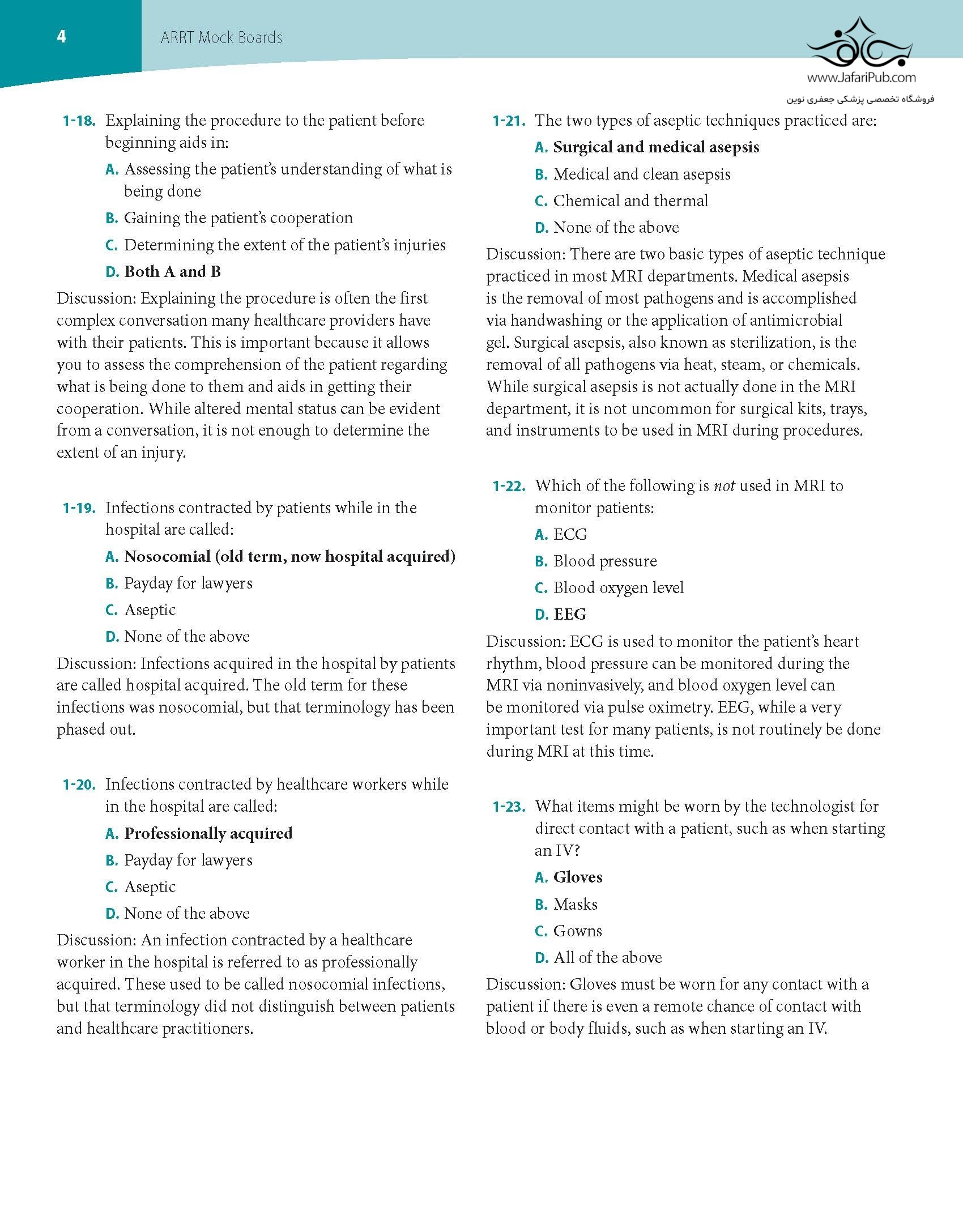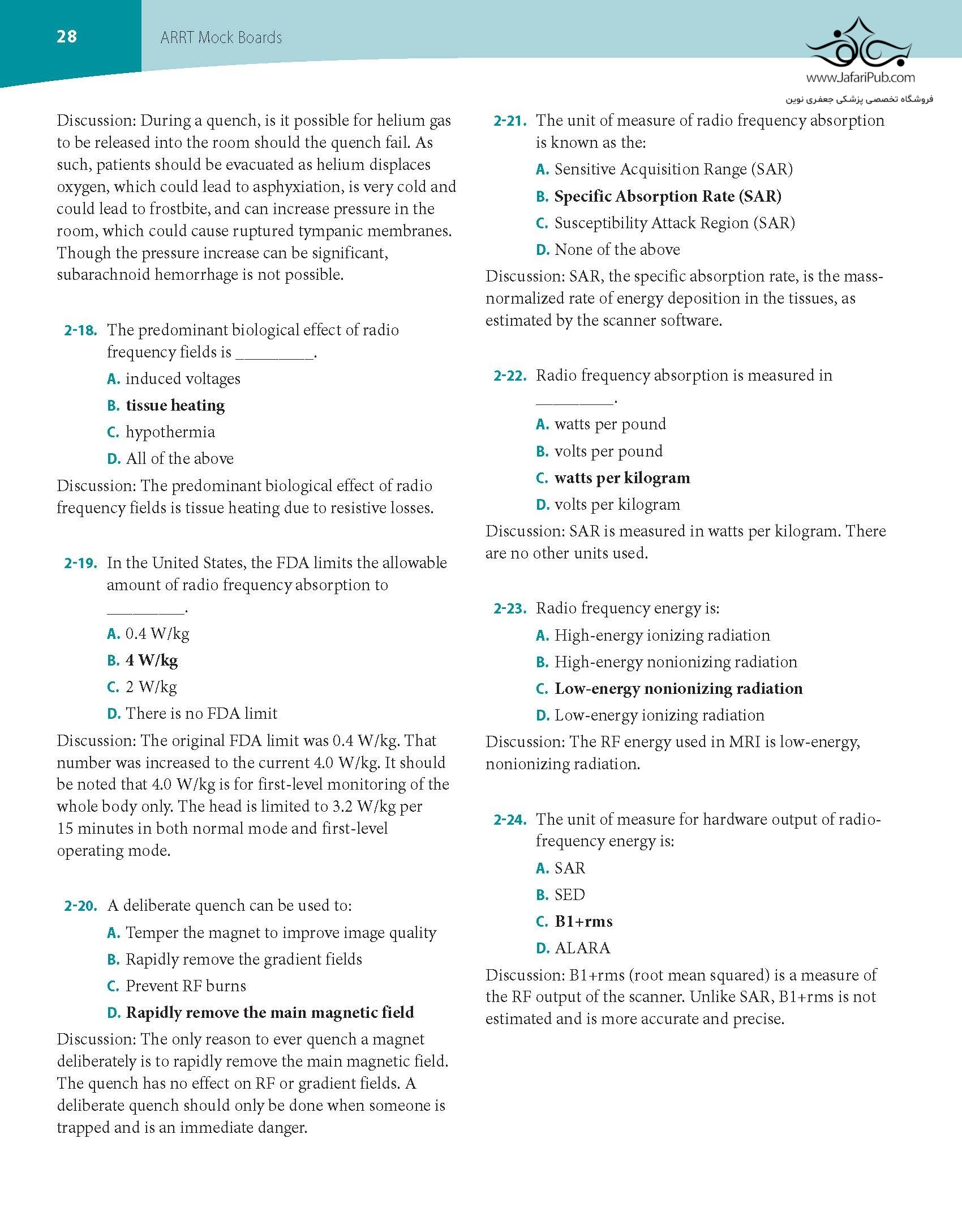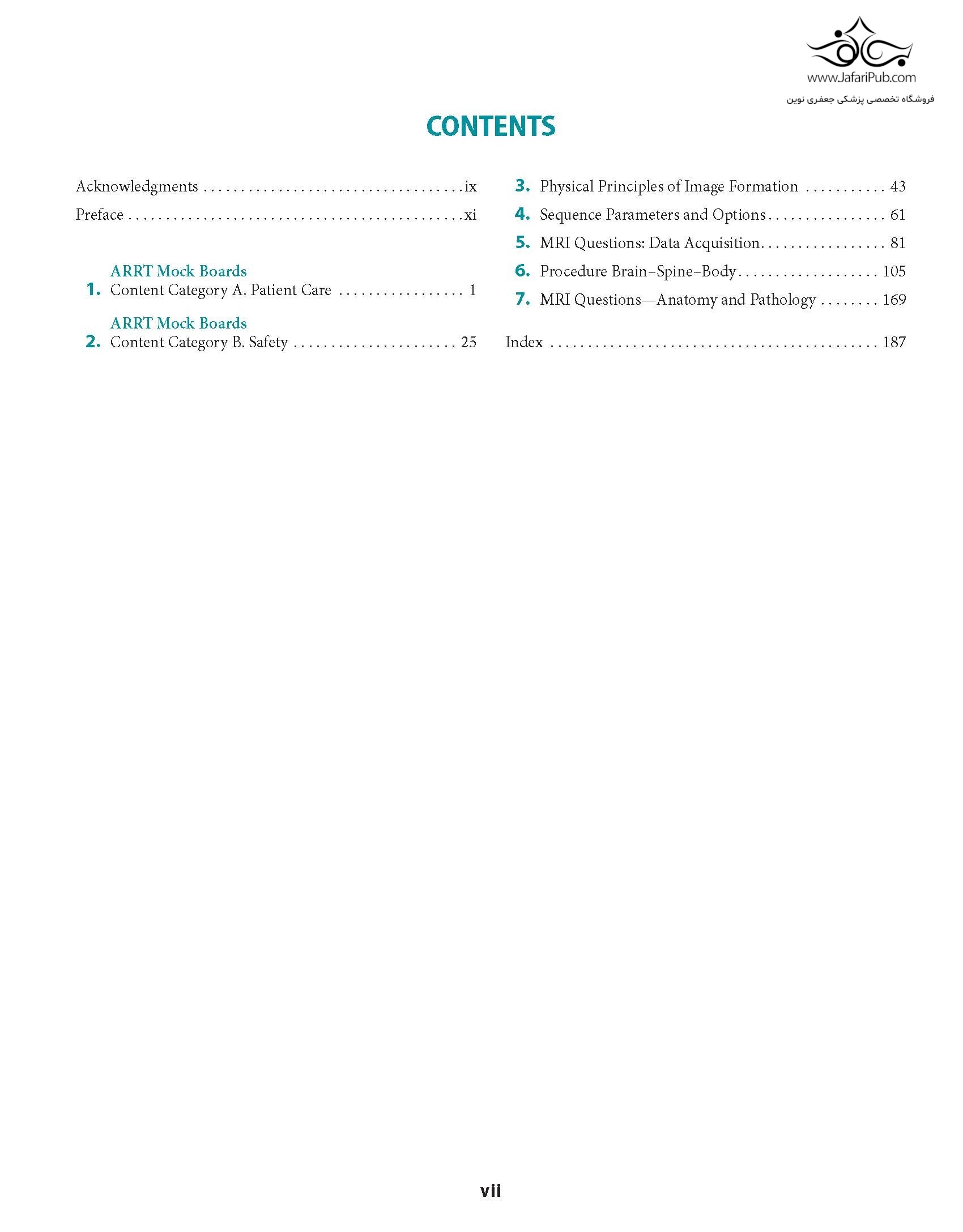 آزمون MRI پرسش و پاسخ LANGE™ یک بررسی جامع برای تکنسین های رادیولوژی است که خود را برای شرکت در آزمون گواهینامه تخصصی ARRT® در تصویربرداری تشدید مغناطیسی (MRI) آماده می کنند. خوانندگان بیش از ۸۰۰ سوال به سبک آزمون را خواهند یافت که دقیقاً از جدیدترین طرح آزمون ARRT® پیروی می کنند. هر سوال شامل توضیح مفصلی برای گزینه های پاسخ صحیح و نادرست است.