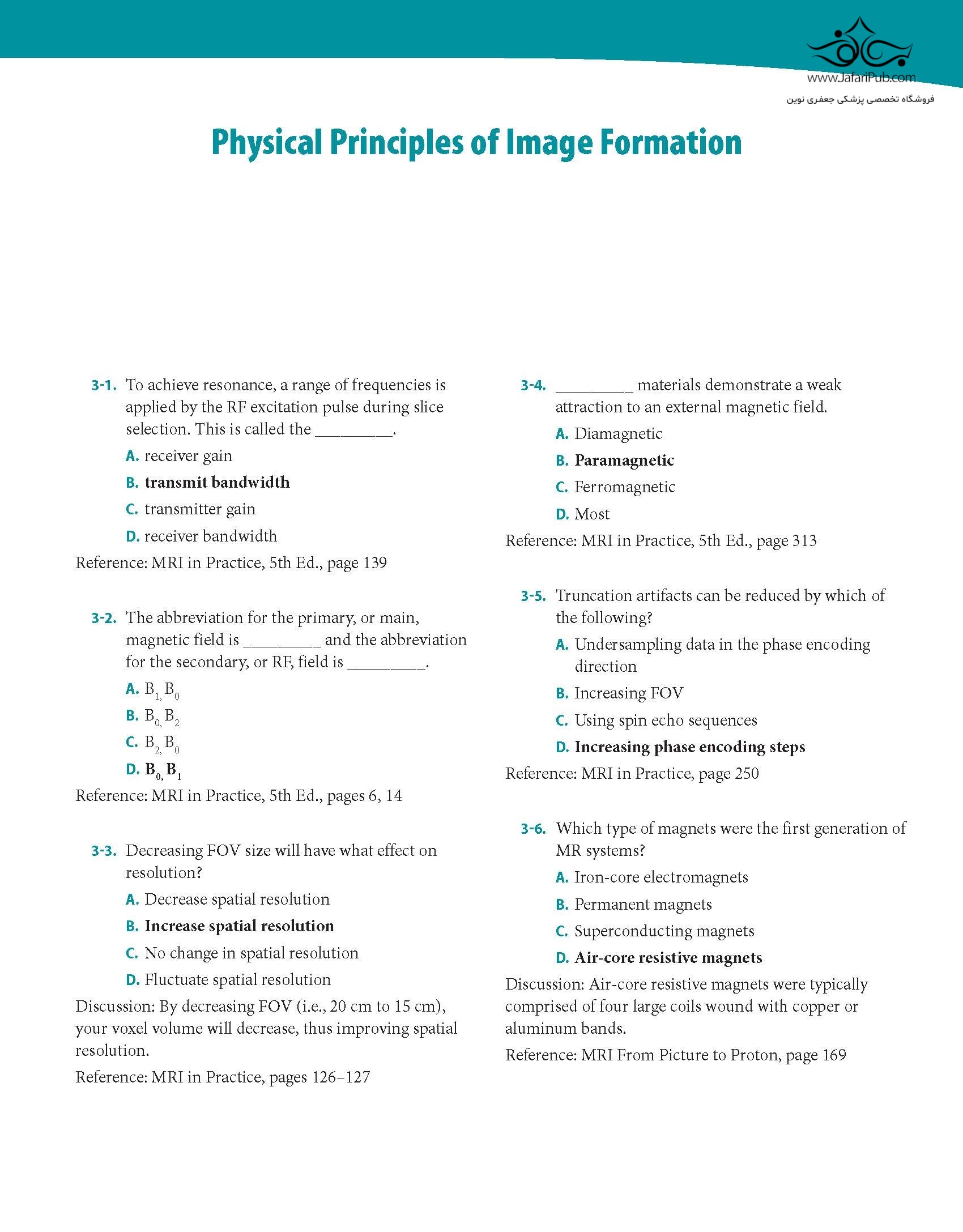This unique review is divided into sections that cover every major topic found on the exam, including Patient Care and Safety, Image Procedures, Date Acquisition and Processing, and Physical Principles of Image Formation.