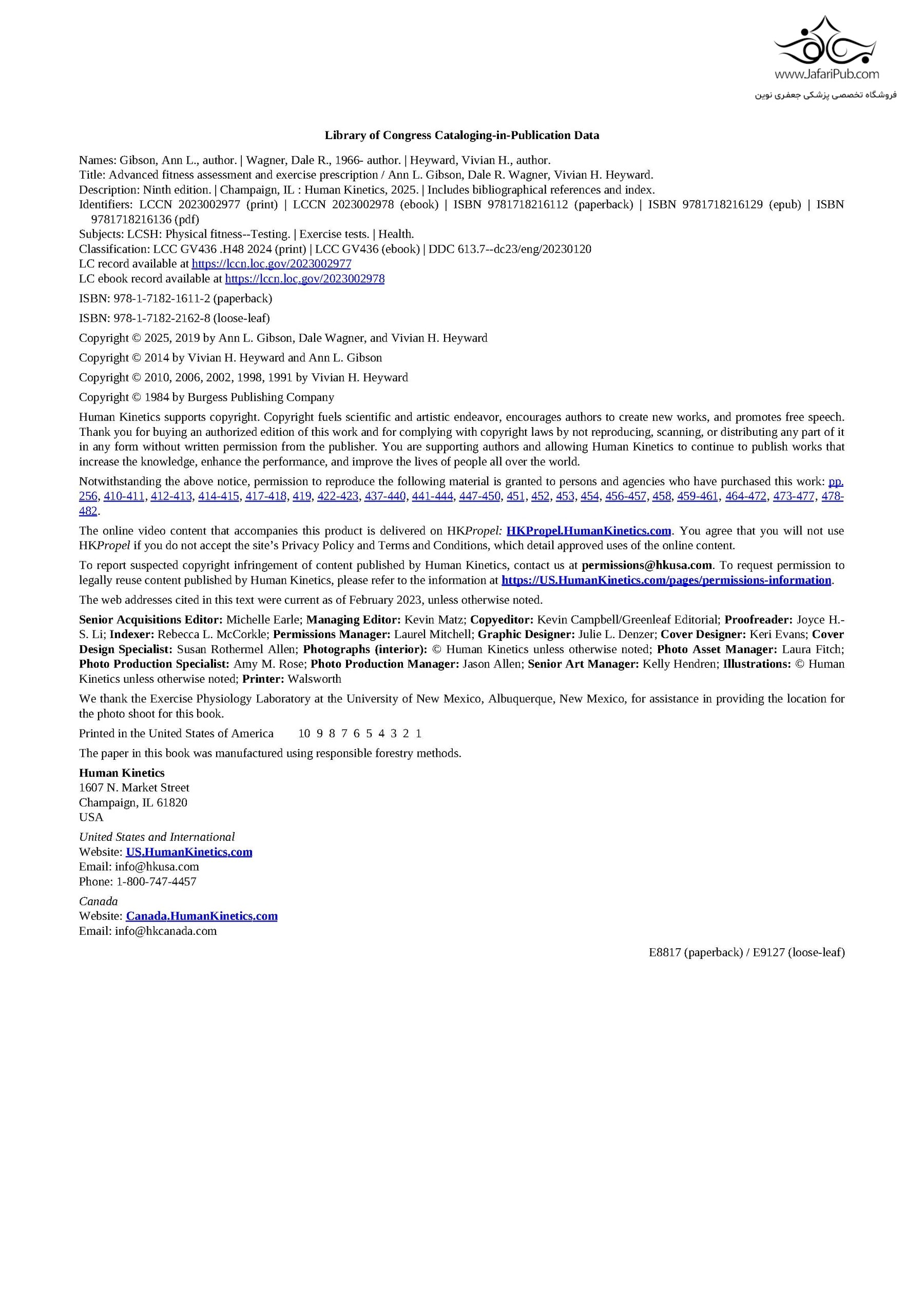 ارزیابی پیشرفته تناسب اندام و تجویز ورزش، ویرایش نهم