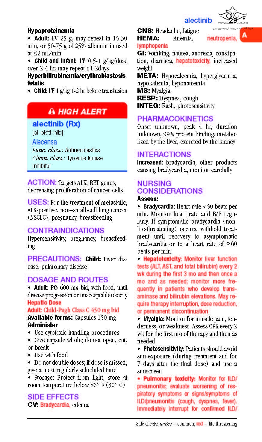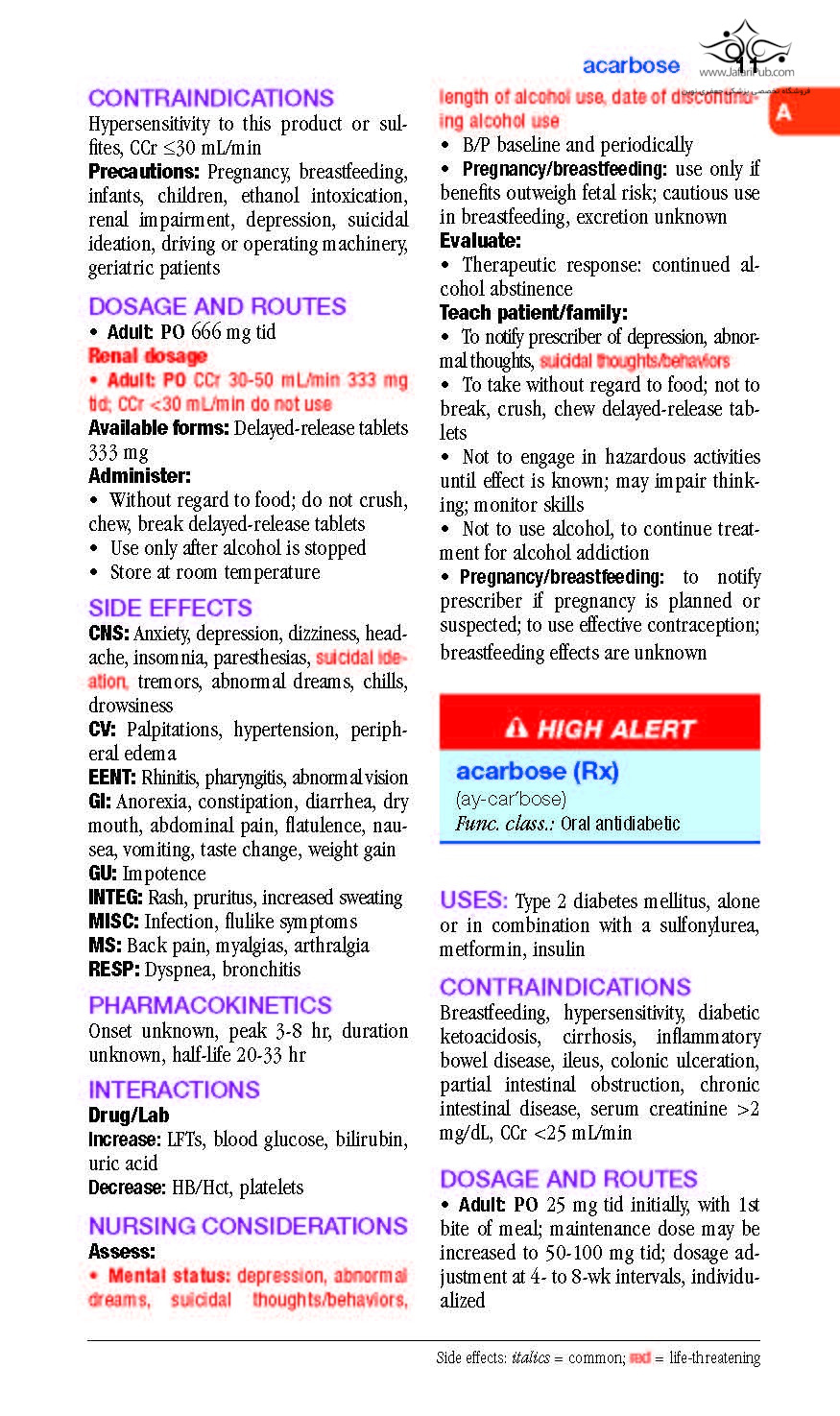 - NEW! Drug monographs for 24 newly released, FDA-approved medications equip you with the latest drug information including generic names, trade names, pronunciations, do-not-confuse drugs, action, uses, contraindications, precautions, dosages and routes, side effects, pharmacokinetics, interactions (including drug/herb, drug/food and drug/lab test), nursing considerations, treatment of overdose, patient/family teaching, and more