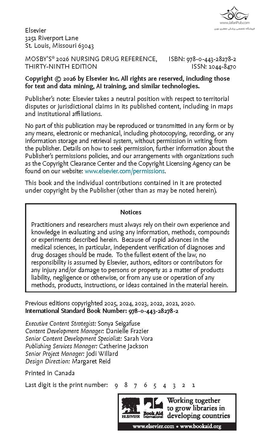 مرجع داروهای پرستاری Mosby's 2026 (مرجع داروهای پرستاری Mosby) ویرایش سی و نهم