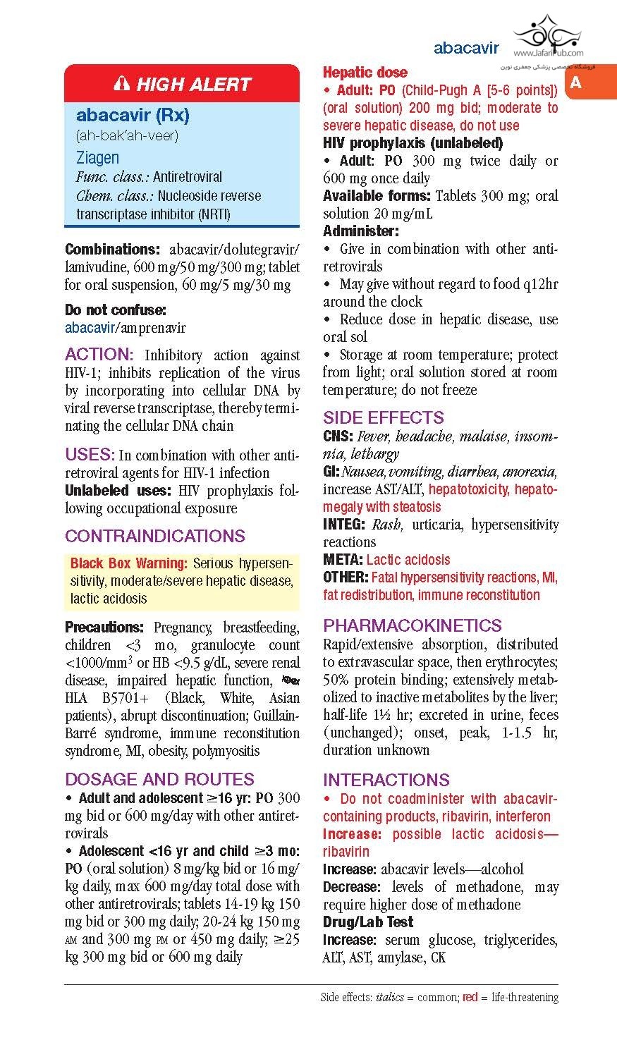 - Alphabetical organization by generic name provides quick and easy access to specific drugs, with both trade and generic names listed in the index