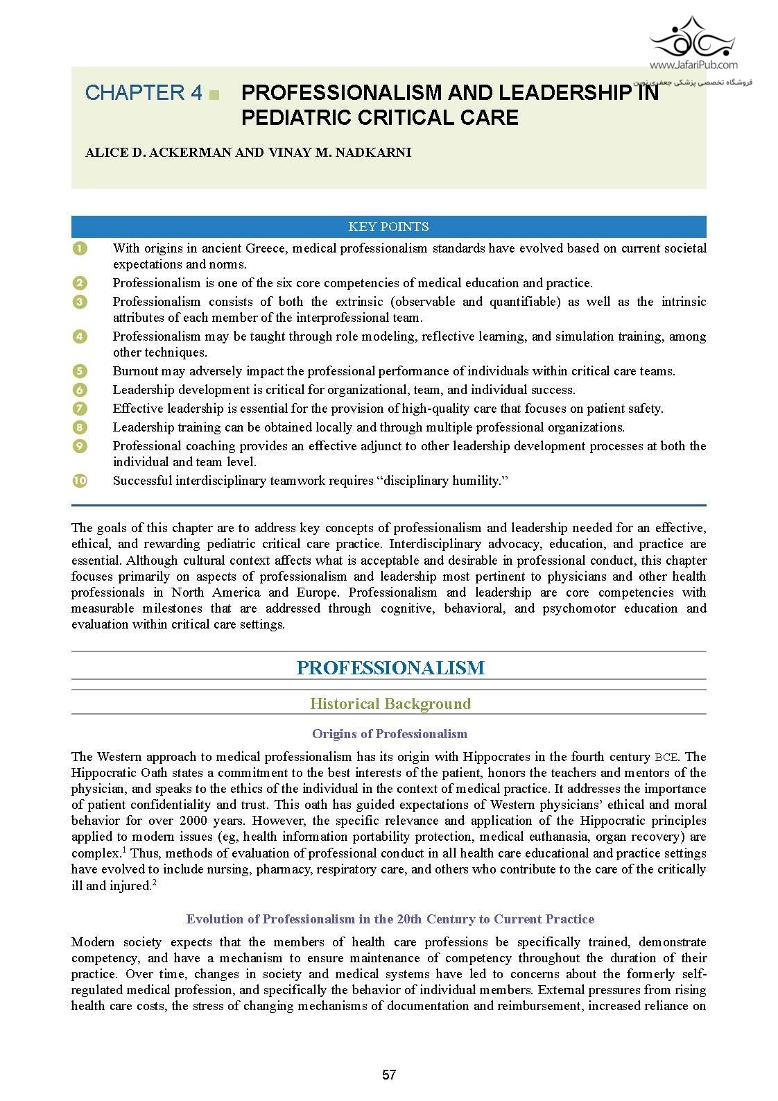 کتاب «درسنامه مراقبت های ویژه کودکان راجرز» که مدت هاست به عنوان متن پیشرو در این حوزه پویا شناخته می شود، توضیحات جامع و روشنی در مورد اصول زیربنایی بیماری ها و تروماهای مراقبت های ویژه کودکان و همچنین نحوه اعمال این اصول ارائه می دهد. ویرایش ششم کاملاً اصلاح شده، به رهبری دکتر دونالد اچ. شافنر، جان جی. مک کلاسکی، الیزابت ای. هانت و رابرت سی. تاسکر، به همراه تیمی متشکل از ۲۷ ویراستار بخش و همچنین بیش از ۲۵۰ همکار متخصص جهانی، شما را کاملاً در مورد درک، درمان ها، فناوری ها و پیامدهای امروزی در مورد بیماری های وخیم در کودکان به روز می کند. شامل ۱۲۰ فصل به روز که همه چیز را از اختلالات خونی/انکولوژیک گرفته تا حوادث ناشی از تلفات انبوه و سازماندهی و طراحی فیزیکی بخش مراقبت های ویژه کودکان (PICU) پوشش می دهد.
