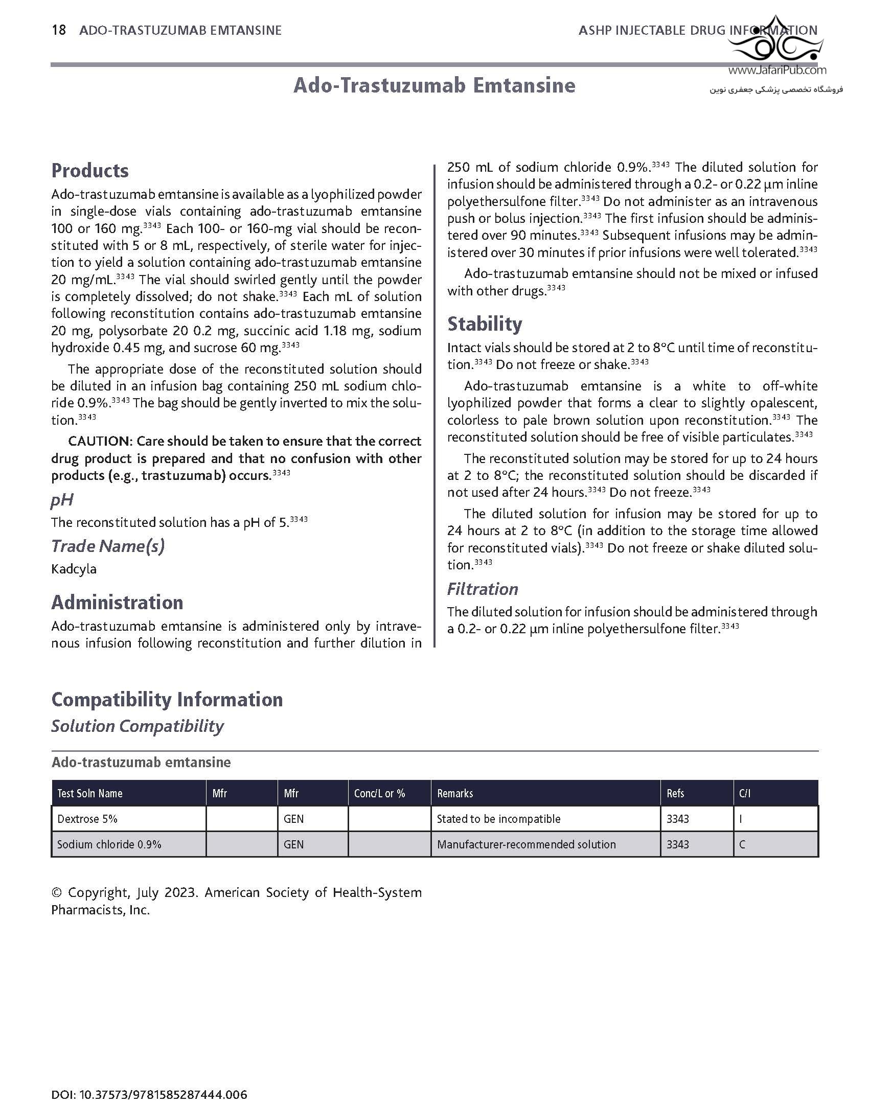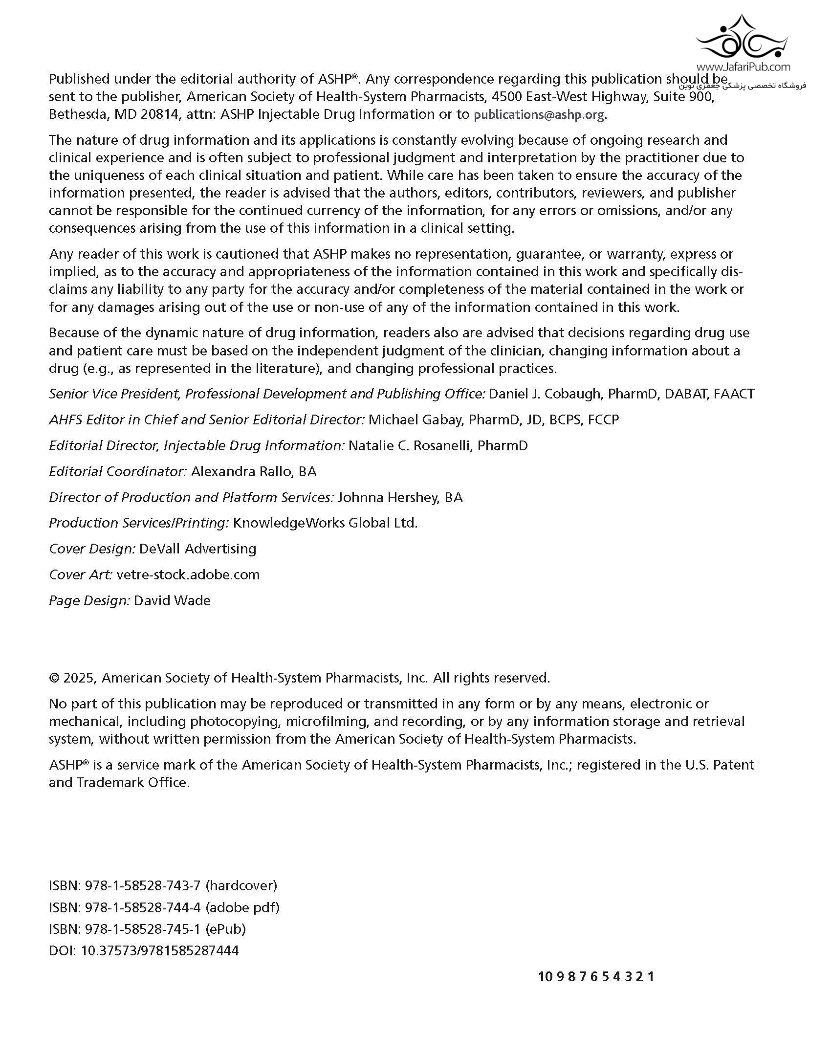 10% Handbook on Injectable Drugs (R) : ASHP's Guide to IV Compatibility and Stability کد کتاب : 104493 انتشارات American Society for Microbiology 3,927,000 تومانقیمت اصلی کتاب 3,927,000 تومان بود3,534,300 تومان قیمت فعلی کتاب 3,927,000 تومان است