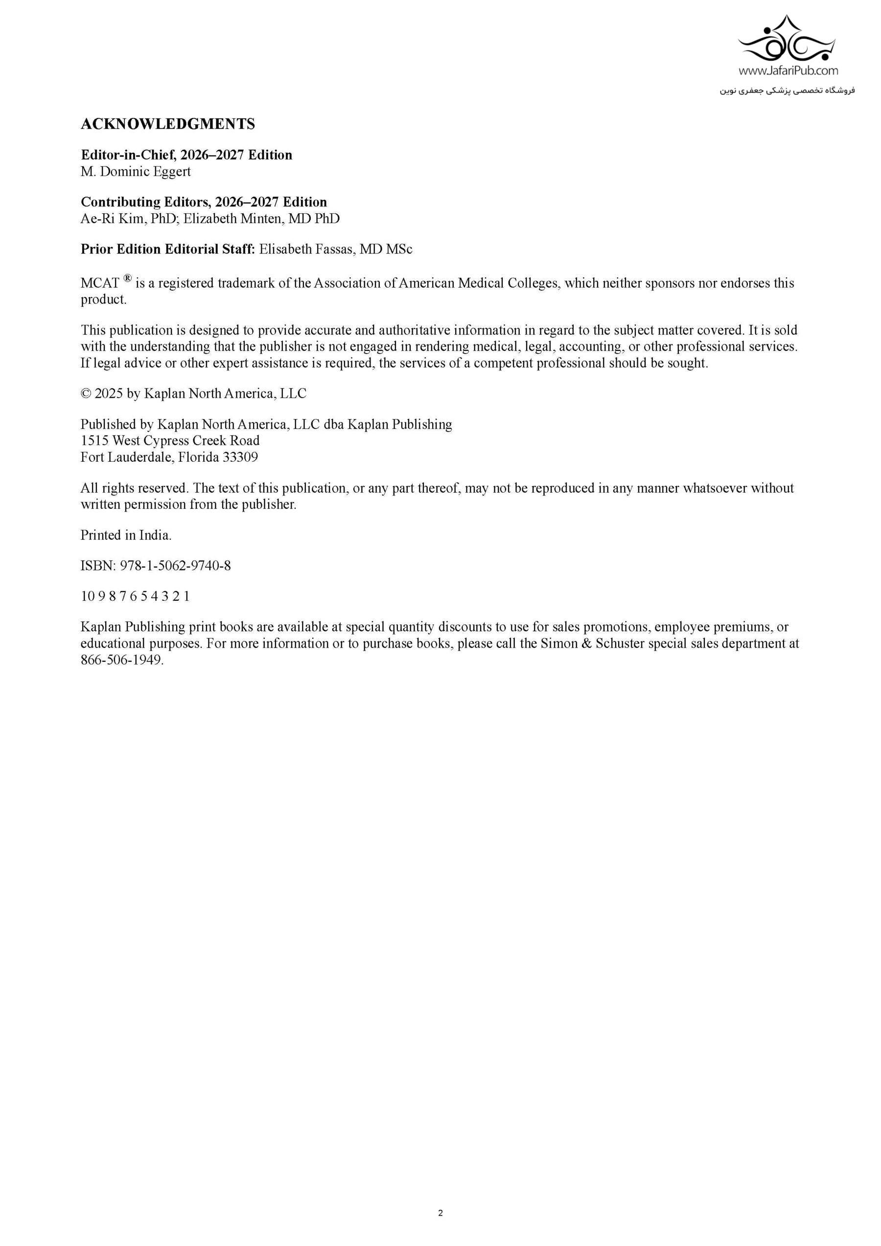 آمادگی برای MCAT یک چالش واقعی است. کاپلان می تواند در این مسیر همراه شما باشد - و راهنمایی هایی در مورد محل تمرکز تلاش هایتان و نحوه سازماندهی مرورتان ارائه می دهد. این کتاب به گونه ای به روزرسانی شده است که دقیقاً با دستورالعمل های AAMC مطابقت داشته باشد - دیگر نگران جامع بودن مرور MCAT خود نباشید!