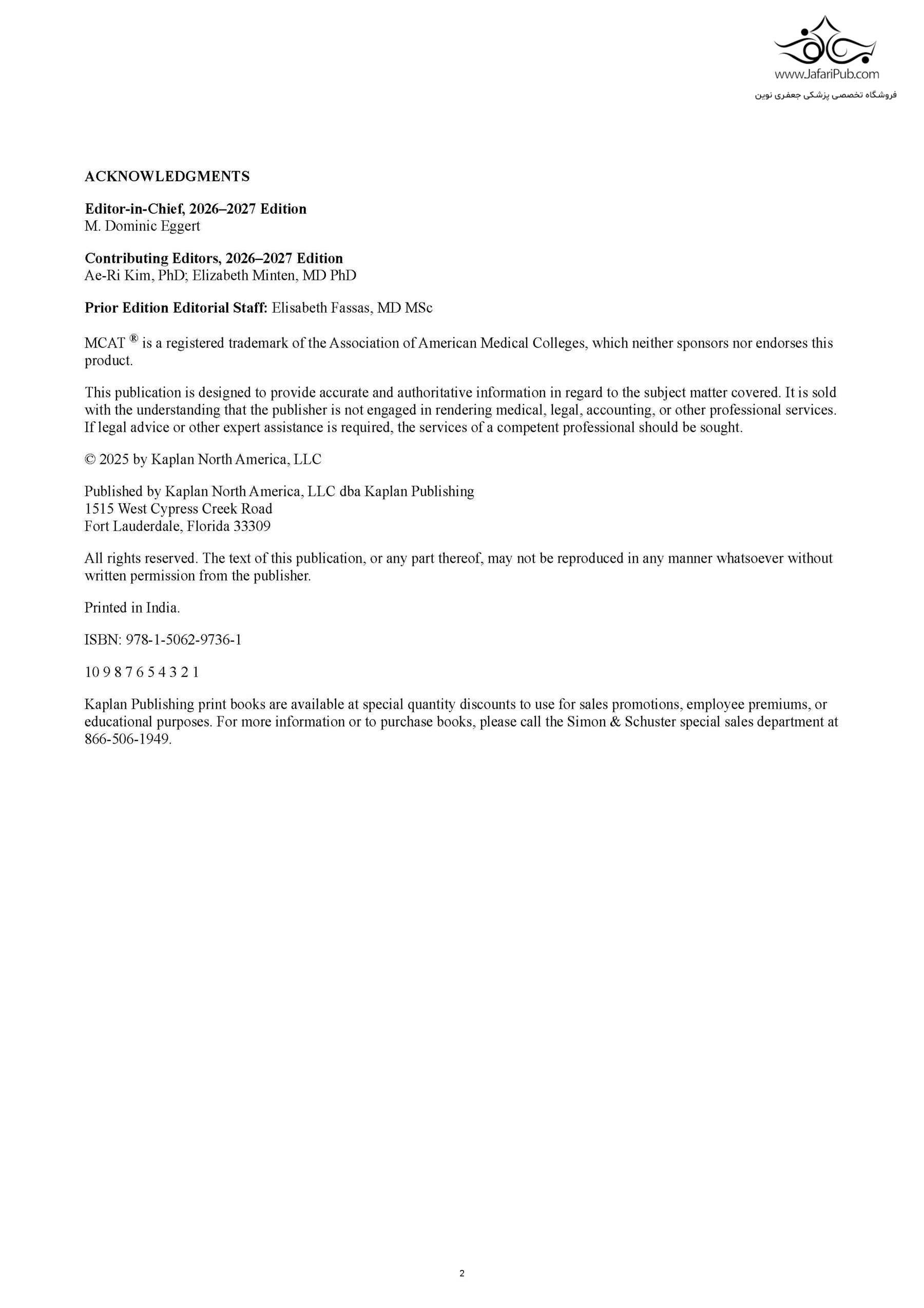 آمادگی برای MCAT یک چالش واقعی است. کاپلان می تواند در این مسیر همراه شما باشد - و راهنمایی هایی در مورد محل تمرکز تلاش هایتان و نحوه سازماندهی مرورتان ارائه می دهد. این کتاب به گونه ای به روزرسانی شده است که دقیقاً با دستورالعمل های AAMC مطابقت داشته باشد - دیگر نگران جامع بودن مرور MCAT خود نباشید!