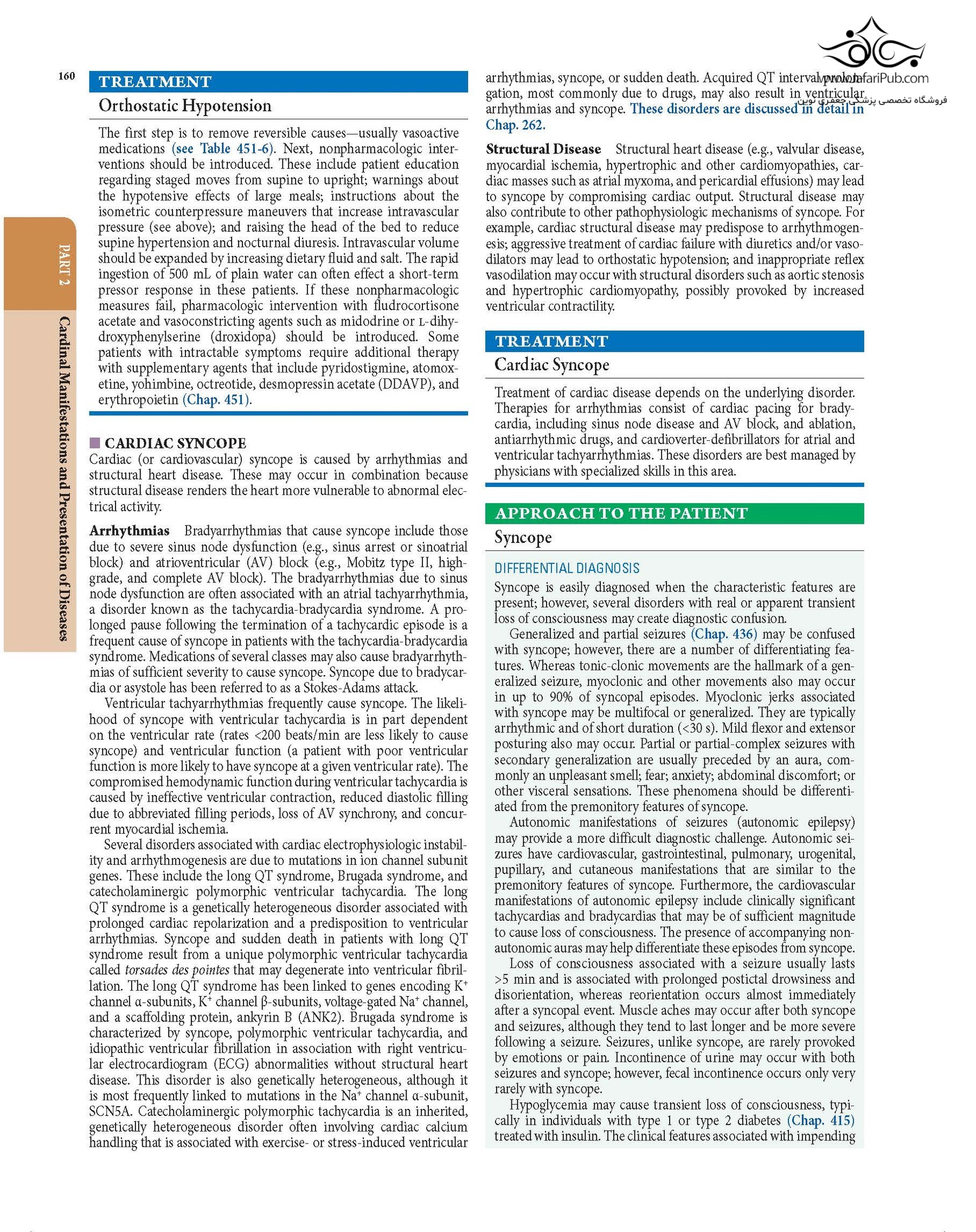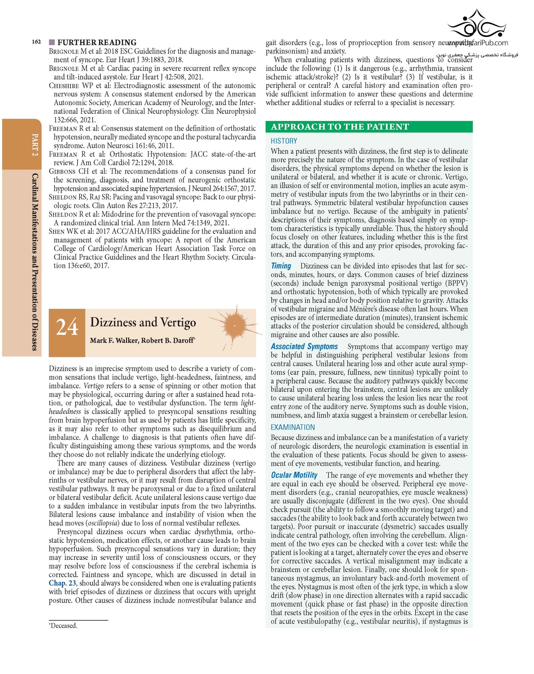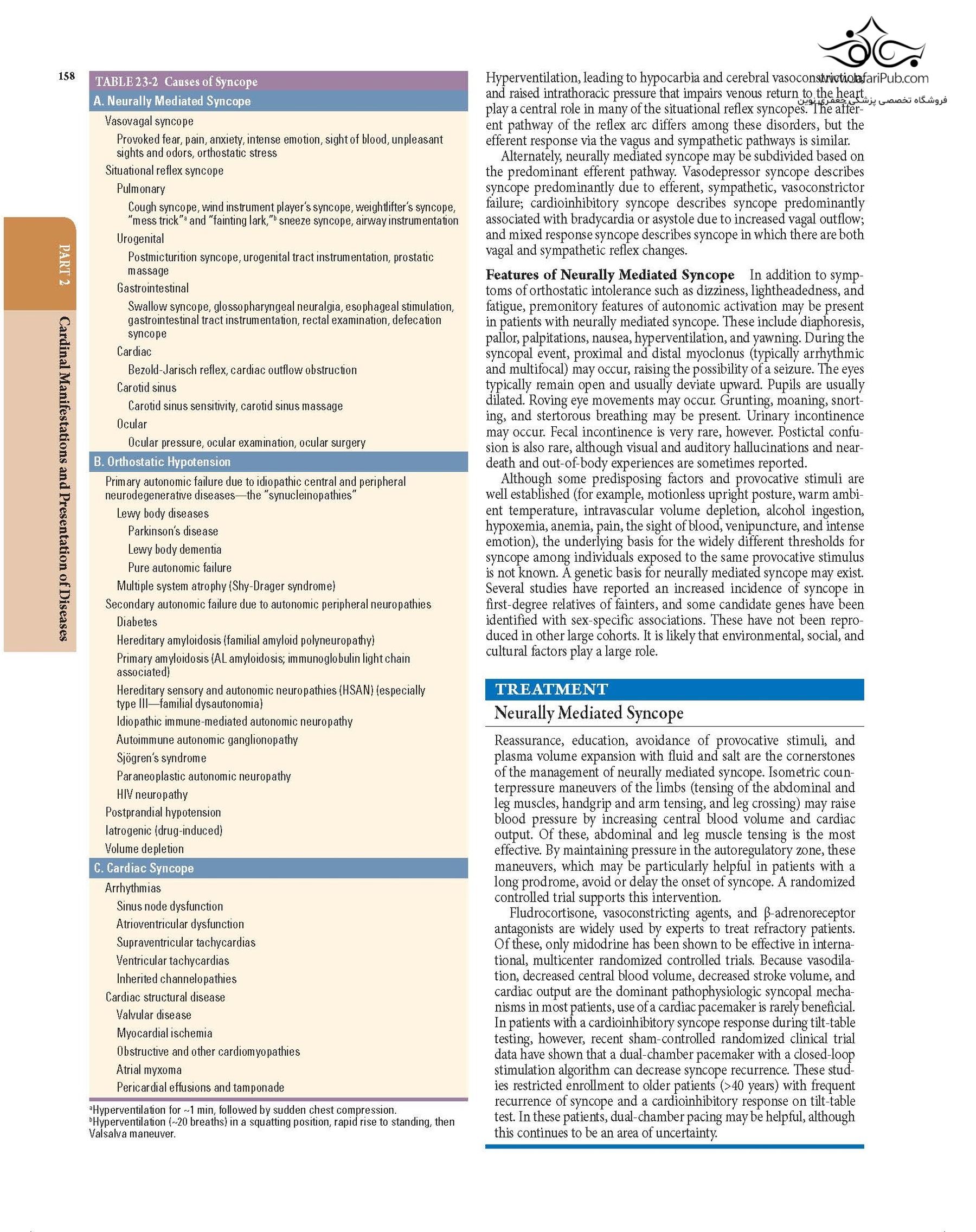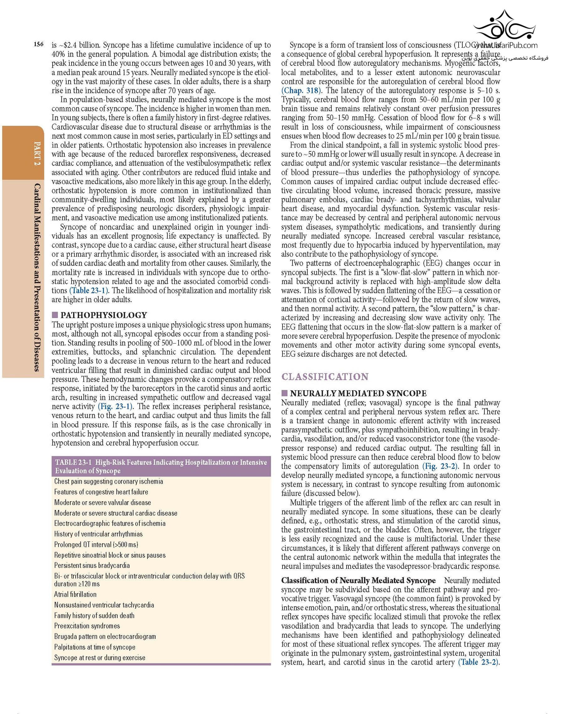 اصول طب داخلی هاریسون بیماری های مغز و اعصاب در این فصل، بیماری های گسترده سیستم عصبی مرکزی و محیطی بررسی شده اند که شامل سکته مغزی، بیماری های نورودژنراتیو مانند آلزایمر و پارکینسون، اختلالات حرکتی، بیماری های التهابی و عفونت های عصبی می باشند. پیشرفت های تشخیصی مانند تصویربرداری MRI، سی تی اسکن، الکتروفیزیولوژی و آزمایش های مولکولی به تفصیل بیان شده و درمان های دارویی، جراحی و توانبخشی نیز به صورت جامع شرح داده شده است. این فصل یکی از منابع مهم برای نورولوژیست ها، متخصصین توانبخشی و دانشجویان پزشکی به شمار می رود.