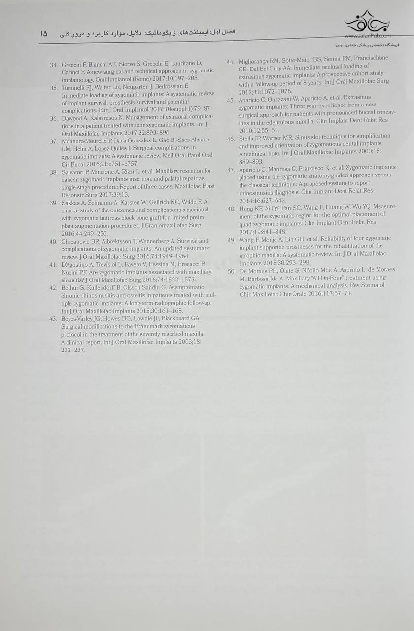 فصل اول : ایمپلنتهای زایگوماتیک دلایل موارد کاربرد و مرور کلی