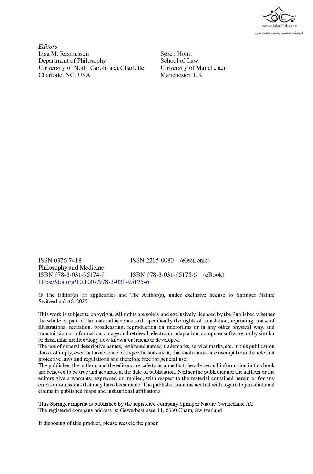 دارای 10% تخفیف 50 Years of Philosophy and Medicine Years of Philosophy and Medicine 50 Years of Philosophy and Medicine 50 Years of Philosophy and Medicine 50 Years of Philosophy and Medicine 50 Years of Philosophy and Medicine 50 Years of Philosophy and Medicine 50 Years of Philosophy and Medicine 50 Years of Philosophy and Medicine 50 Years of Philosophy and Medicine 50 Years of Philosophy and Medicine 50 Years of Philosophy and Medicine 50 Years of Philosophy and Medicine 50 Years of Philosophy and Medicine 50 Years of Philosophy and Medicine 50 Years of Philosophy and Medicine 50 Years of Philosophy and Medicine 50 Years of Philosophy and Medicine 50 Years of Philosophy and Medicine 50 | فلسفه و پزشکی50سال کد کتاب199691 (137 ) این جلد، تاریخچه مجموعه فلسفه و پزشکی را با ارزیابی گذشتهنگر از تأثیر این مجموعه در طول ۵۰ سال، که توسط برخی از کسانی که از ابتدا درگیر آن بودهاند و دیگرانی که تحت تأثیر این مجموعه قرار گرفتهاند، نوشته شده است، گرامی میدارد. ناشر : Springer ( فهرست کتاب های انتشارات Springer ) تعداد صفحه 221 چاپ رنگی زبان انگلیسی سال نشر 2025 قطع وزیری نوبت چاپ اول موجود در انبار (قیمت و موجودی بروز می باشد ، با خیال راحت خرید کنید) 10% کتاب با 10 درصد تخفیف 730,000 تومانقیمت اصلی : 730,000 تومان بود657,000 تومان قیمت فعلی : 730,000 تومان است 0 ريال جمع تخفیف کالاهای اصلی 0 ريال جمع مبلغ پرداختی کالاهای اصلی 0 ريال جمع تخفیف کالاهای اجباری 0 ريال جمع مبلغ پرداختی کالاهای اجباری 0 ريال جمع تخفیف کالاهای اختیاری 0 ريال جمع مبلغ پرداختی کالاهای اختیاری تعداد درخواستی : نوع صحافی یک گزینه انتخاب کنید سیمی 1 جلدی 50,000 تومان اضافه سیمی 2 جلدی 100,000 تومان اضافه سیمی 3 جلدی 150,000 تومان اضافه سیمی 4 جلدی 200,000 تومان اضافه سیمی 5 جلدی 250,000 تومان اضافه سیمی 6 جلدی 300,000 تومان اضافه سیمی 7 جلدی 350,000 تومان اضافه سیمی 8 جلدی 400,000 تومان اضافه سیمی 9 جلدی 450,000 تومان اضافه سیمی 10 جلدی 500,000 تومان اضافه شومیز(جلد نرم) 60,000 تومان اضافه هارد کاور 1جلدی (جلد سخت) 130,000 تومان اضافه هارد کاور 2جلدی (جلد سخت) 260,000 تومان اضافه هارد کاور 3جلدی (جلد سخت) 390,000 تومان اضافه هارد کاور 4جلدی (جلد سخت) 520,000 تومان اضافه نوع چاپ یک گزینه انتخاب کنید گلاسه + رنگی + سیمی 650,000 تومان اضافه سیاه و سفید -131,000 تومان کمتر تحریر + رنگی 0 سود شما از خرید : 0 جمع مبلغ پرداختی : 0 افزودن به سبد خرید