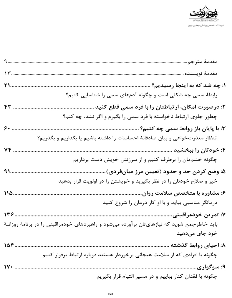 سوالات متداول در مورد خرید کتاب رهایی از روابط سمی قیمت این کتاب چقدر است؟ قیمت این کتاب با تخفیف 279,300 تومان است. قیمت بدون تخفیف 285,000 تومان می باشد. این کتاب چه زمانی به دستم می رسد؟ برای کتاب های غیرلاتین، سفارش پس از 1 روز کاری جمع آوری و به پست یا پیک سپرده می شود. اگر مقصد تهران باشد و روش پیک انتخاب شود، در روزهای غیر تعطیل و ساعات کاری همان روز ارسال انجام می شود.