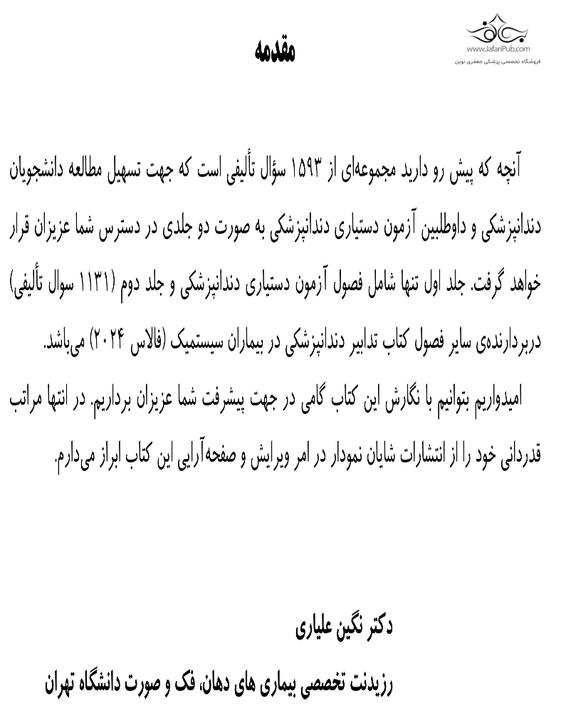 5% Eksir اکسیر آبی مجموعه سوالات تشریحی دندانپزشکی کودکان ارتقاء و بورد 1402 و ارتقاء 1403 کد کتاب : 00103064 انتشارات آرتین طب 250,000 تومانقیمت اصلی کتاب 250,000 تومان بود237,500 تومان قیمت فعلی کتاب 250,000 تومان است